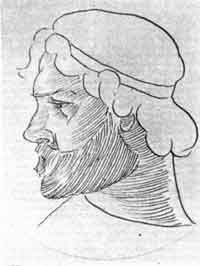 С 1904 года Волошин работает над виньетками и концовками для журнала “Весы” — и, вслед за Ф. Валлотоном, стремится свести человеческое лицо к маске, сделать его предельно лаконичным. (Планируя тогда же первый сборник своих стихотворений, он намеревался вместо посвящений сделать “маски тех, кому посвящено” стихотворение.) Таковы его автопортреты, словно выступающие из концентрических (анфас) и волнообразных (профиль влево) карандашных линий (1904—1908 гг.). К этому же периоду относится автопортрет, воспроизведенный в “Ежегоднике рукописного отдела Пушкинского Дома на 1975 год” (Л., 1977, перед с. 177; датировка: “1920-е годы” — явно не верна).
